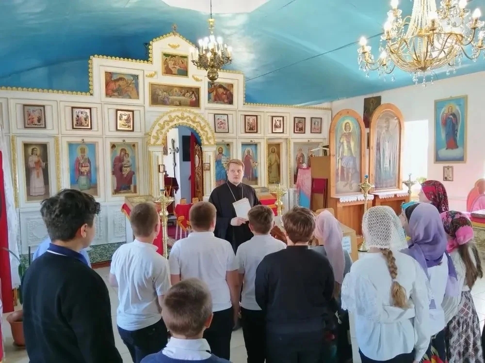 Приложилась экскурсия праздничной трапезой, где священник побеседовал со школьниками в неформальной обстановке, ответил на вопросы. Ребят интересовала жизнь священнослужителей, то, как люди приходят к Богу, как проходила учеба в семинарии и насколько тяжело избрать для себя путь священнослужителя. В завершение встречи священник поблагодарил всех за внимание и благословил школьников на сдачу выпускных проверочных работ, которые их ожидают в конце учебного года.