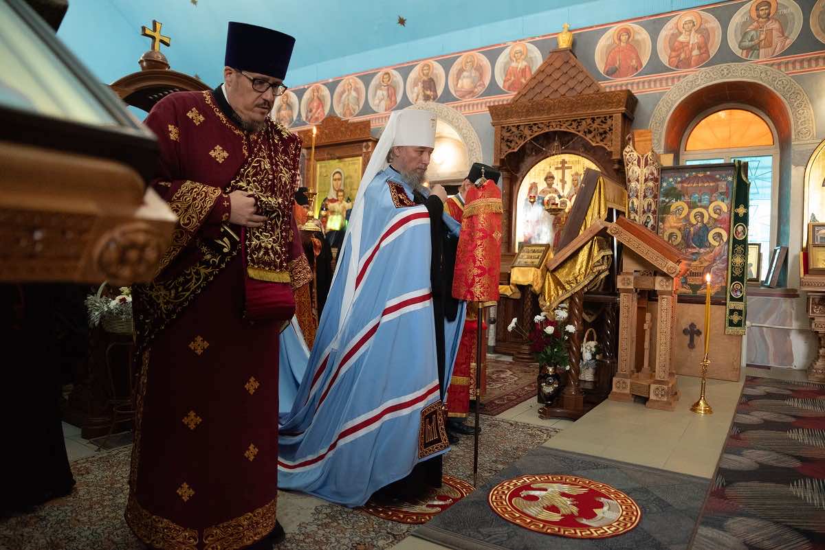 Накануне, 20 ноября, митрополит Василий совершил в Свято-Троицком храме обители Всенощное бдение.