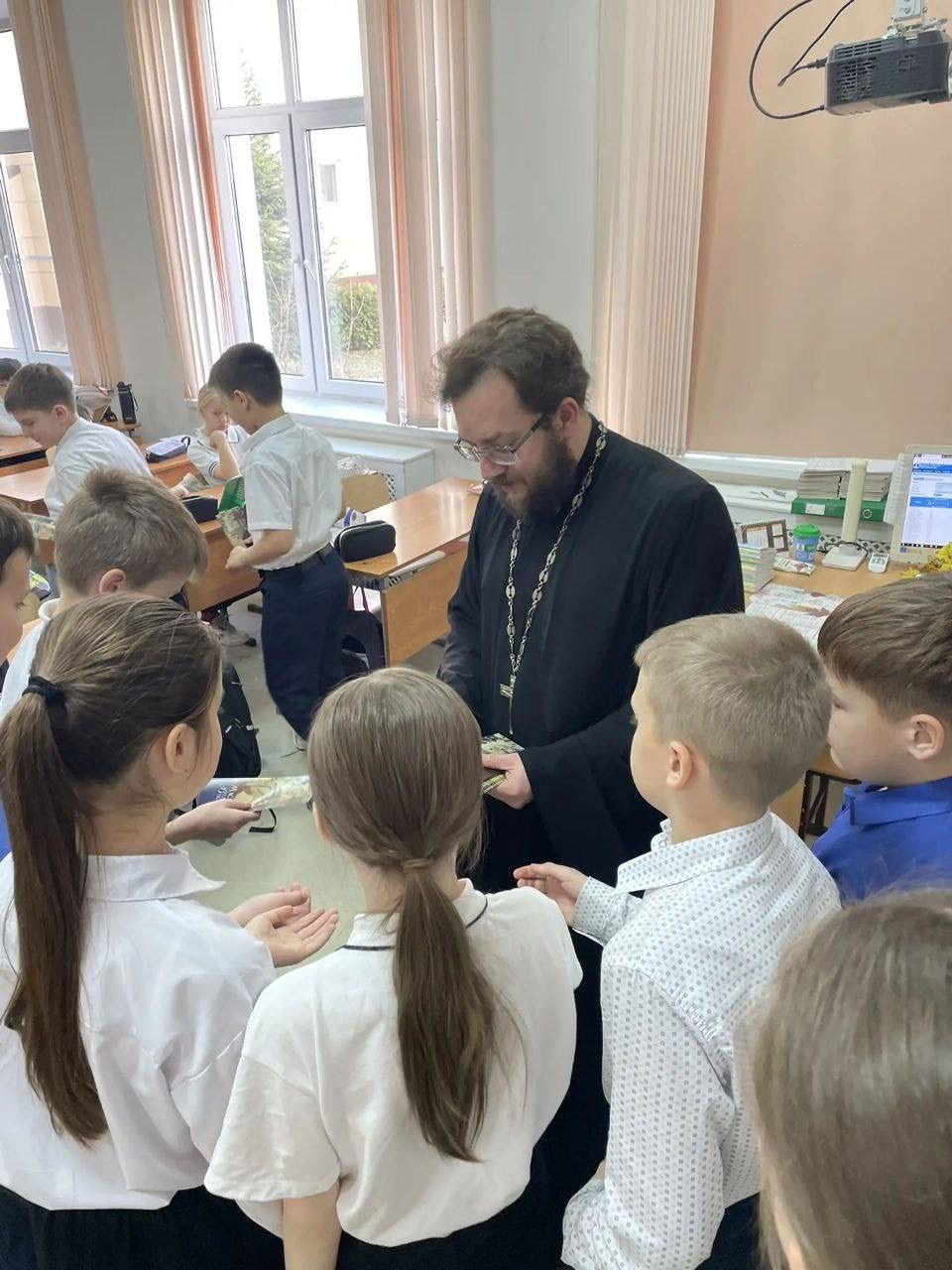 Штатный священник храма Воскресения Христова Андрей Тарасенко провёл духовную беседу с учениками СОШ № 102.