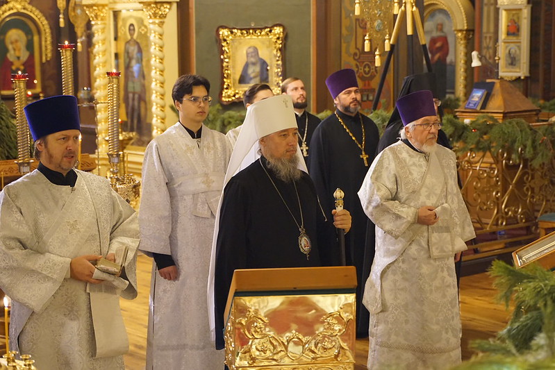 В завершение богослужения митрополит Василий произнес проповедь, поздравил духовенство и прихожан собора с наступающим Рождеством Христовым.