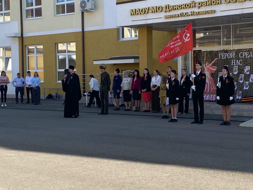 На территории школы состоялась патриотическая линейка, приуроченная к юбилею Великой Победы. По благословению благочинного Динского округа, протоиерея Иоанна Лапко в мероприятии принял участие штатный священник храма Святой Троицы иерей Иоанн Лапко. Он обратился к ученикам, педагогам и гостям с напутственным словом, напомнив о важности сохранения памяти о подвиге советского народа.