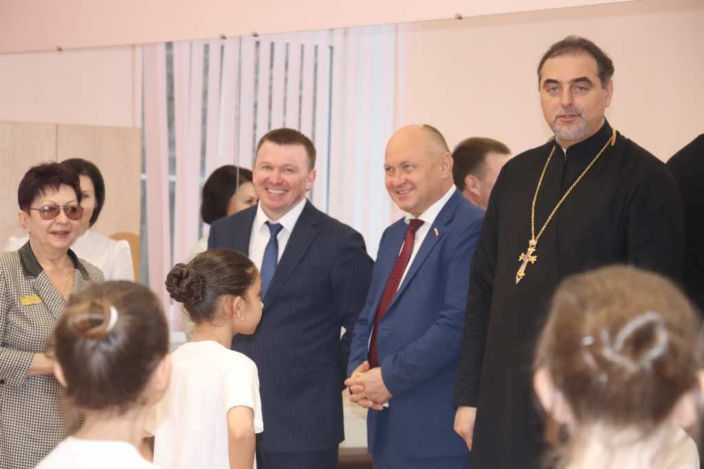 Батюшка сердечно поздравил земляков с открытием обновленного Центра творчества, а также особо отметил, что в нелегком деле воспитания и развития молодежи очень важна преемственность поколений.