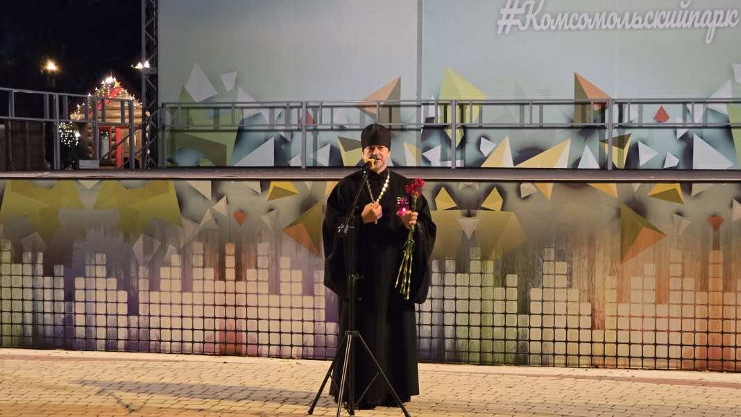 Отец Александр обратился к собравшимся со словами утешения и памяти. Он напомнил о настоящих героях, которые, жертвуя собой, спасали детей и взрослых.