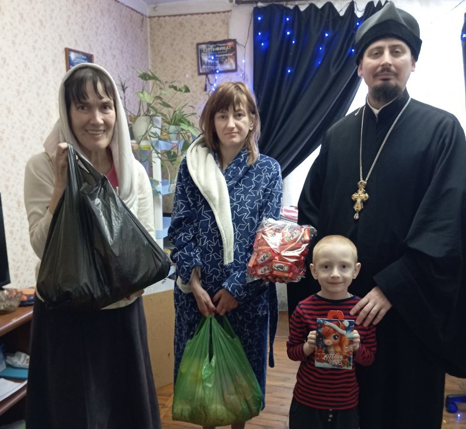 Сотрудники Управления социальной защиты, штатный клирик Свято-Сергиевского храма протоиерей Константин Ланцев и добровольцы прихода по социальному служению преподнесли подарки, духовную литературу и гостинцы нуждающимся семьям.