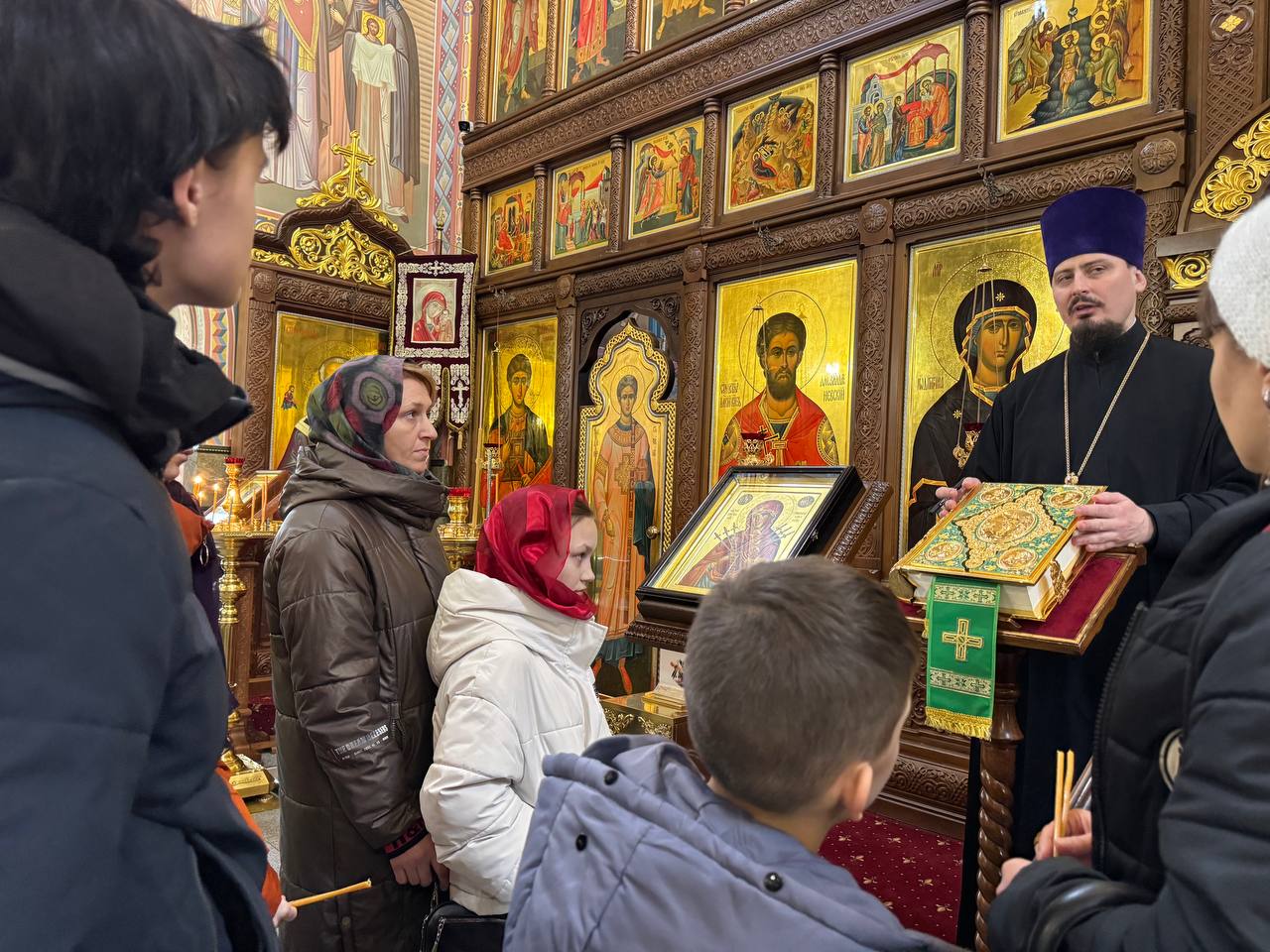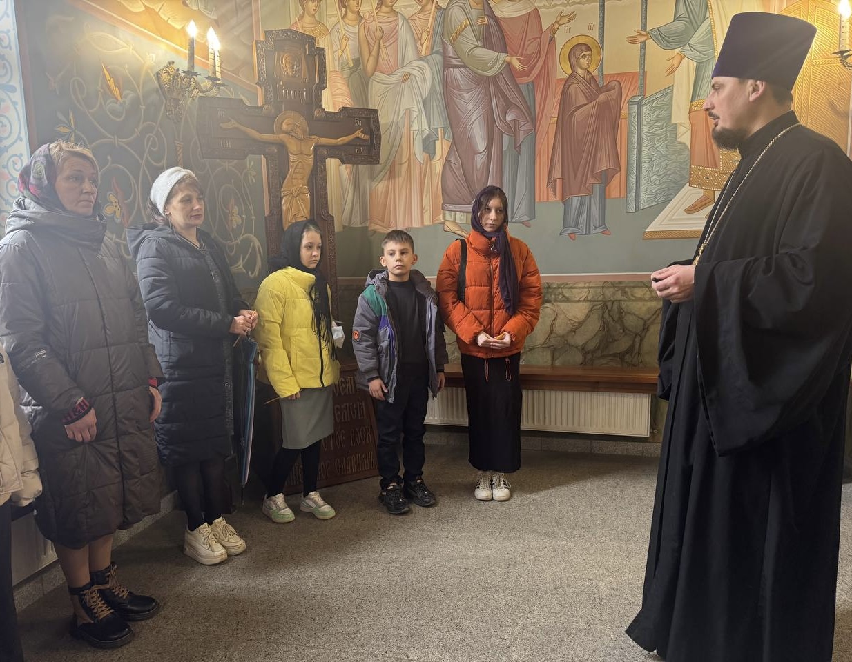 Детей и их родителей встретил штатный клирик Свято-Сергиевского храма протоиерей Константин Ланцев. Для гостей храма была проведена экскурсия, на которой были раскрыты  особенности церковного зодчества и православной иконографии, основы православного учения о Боге, спасении и Таинствах.