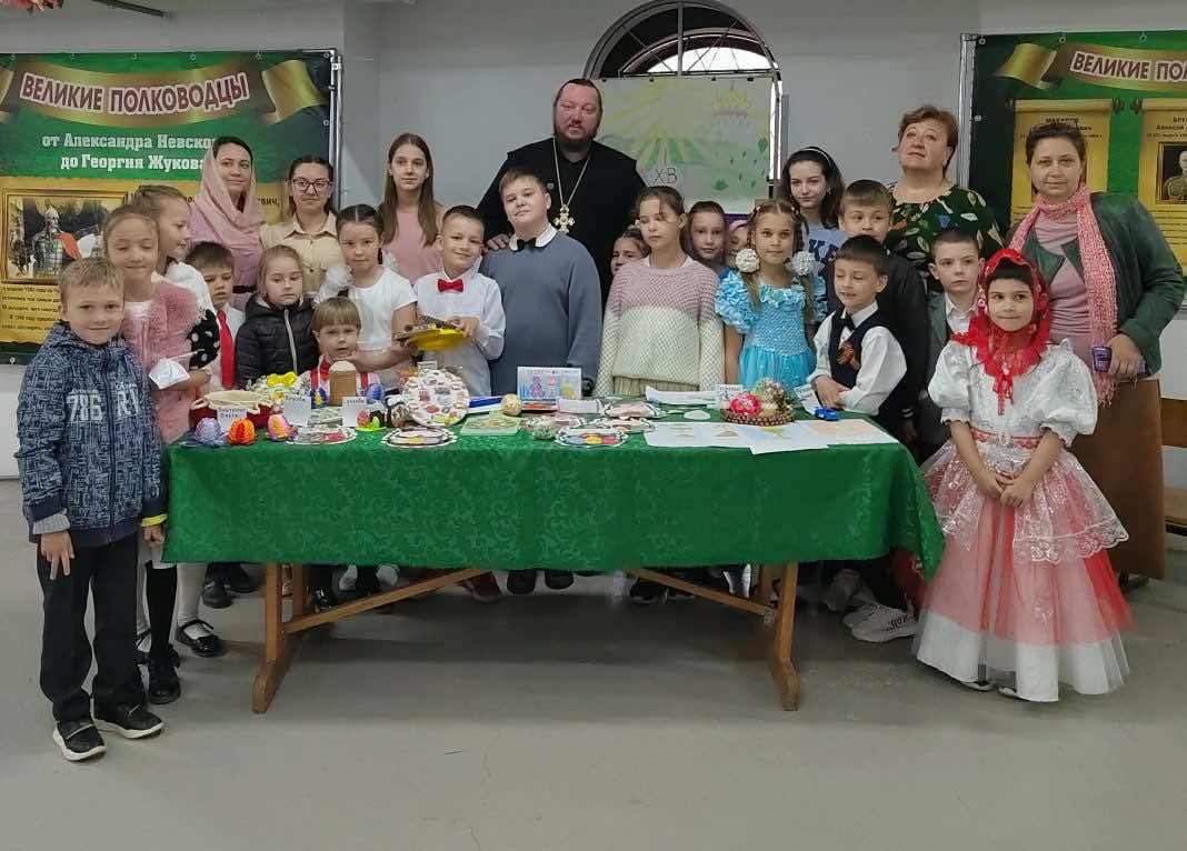 В воскресенье, 1 мая, в Троицком храме г. Горячий Ключ состоялся Пасхальный концерт воскресной школы. После Божественной литургии в актовом зале собрались зрители — духовенство и прихожане храма. Здесь же была организована выставка пасхальных поделок. Воспитанники воскресной школы вместе с педагогами сделали работы в разных техниках: аппликация, канзаши, декупаж. А некоторые ребята сделали поделки дома с родителями.