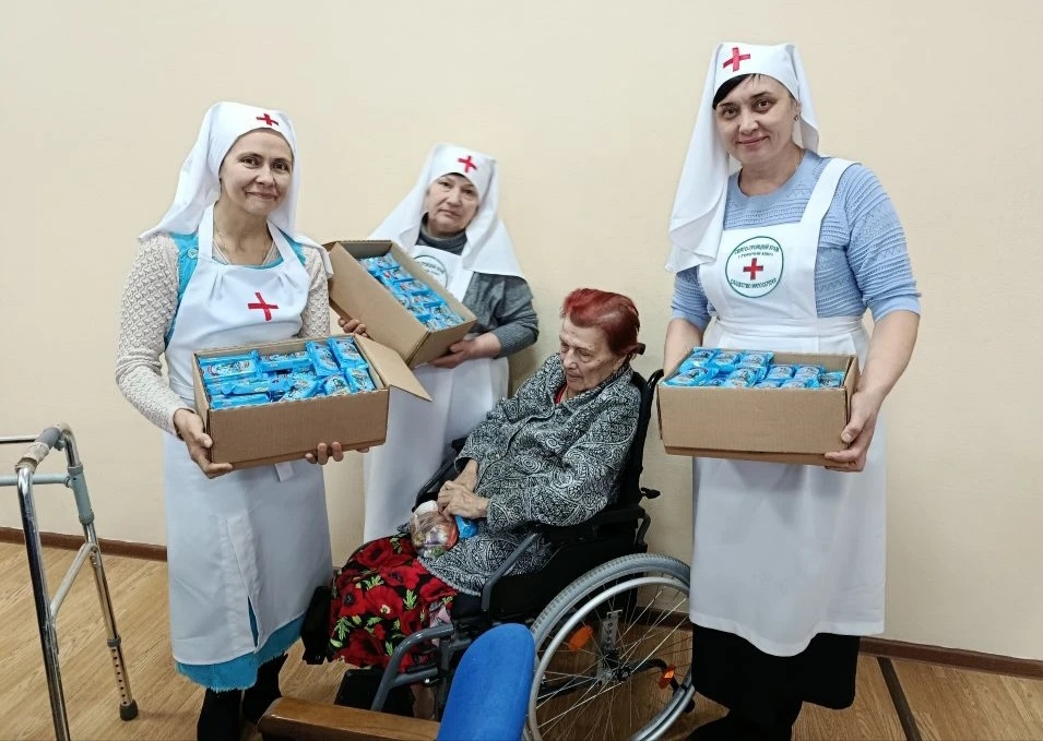 После концерта пациентам интерната вручили сладкие подарки от общества милосердия Троицкого храма. Часть средств члены общества собрали благодаря благотворительной ярмарке: желающие делали пожертвования и приобретали ёлочные игрушки, созданные сестричеством и прихожанами Троицкого храма на мастер-классах. А недостающую на покупку подарков сумму пожертвовал предприниматель из Горячего Ключа, пожелавший остаться неизвестным.